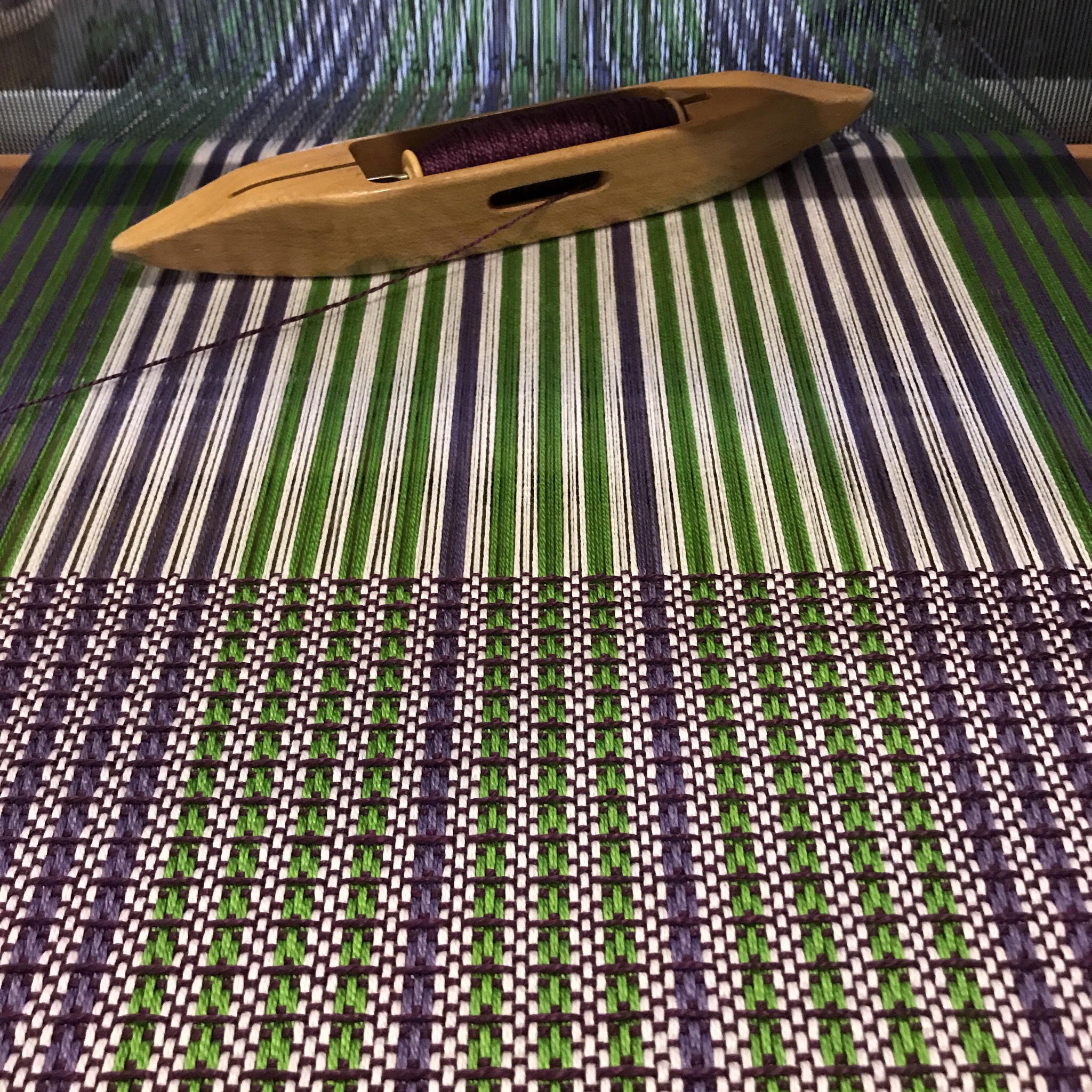 Hello, friends. I love placemats. I love to use them and I love to weave them. They make great gifts and they’re a nice way to “live” with handwovens. When crafted from cotton, they’re especially easy to launder. My newest design is build around a four shaft bird’s eye twill design. I wanted to create some textural interest to the mats but also wanted to incorporate color. A simple four shaft twill seemed to strike the right balance between the two.