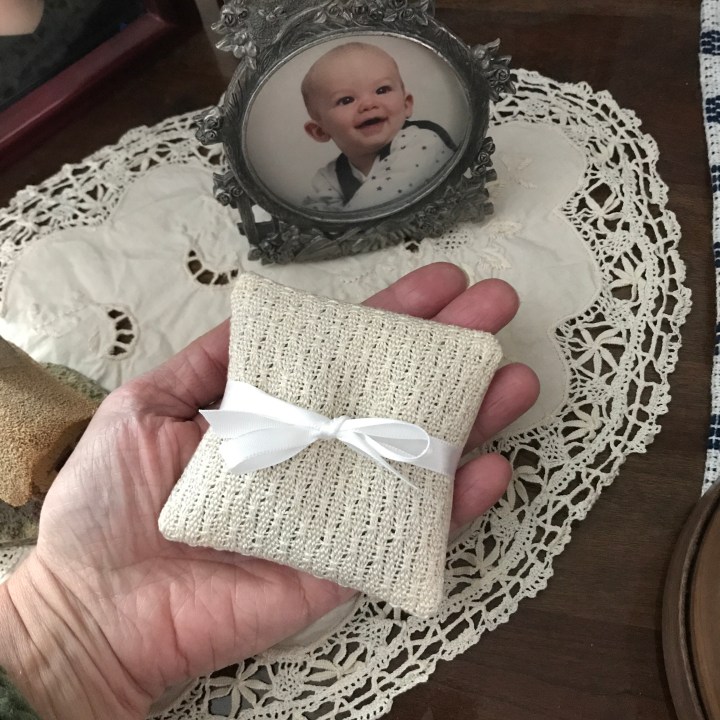 I love to tuck these little handwoven lace sachets into my dresser drawers and into our sweater chest, where we keep our warm winter woolies.