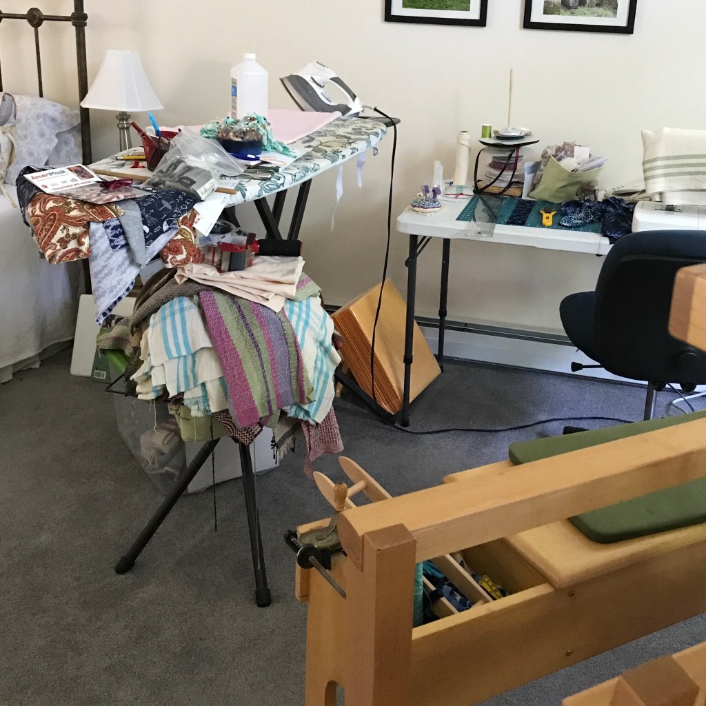 I’m continuing to prepare for the League of NH Craftsmen Virtual Fair in August. Just today participants were asked and encouraged to share live or prerecorded video of their workspaces. I can say with great certainty that no sane person would be interested in seeing a movie about my workspace. I work in my bedroom. Yep! See here!
