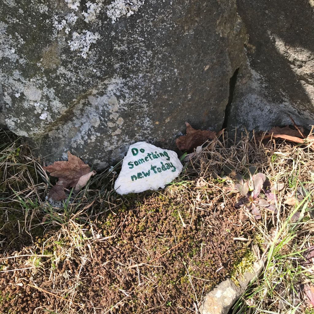 Hello, friends. During a walk to our local Harrisville, NH Post Office not long ago, I came across this tiny stone that had been painted with a big message: