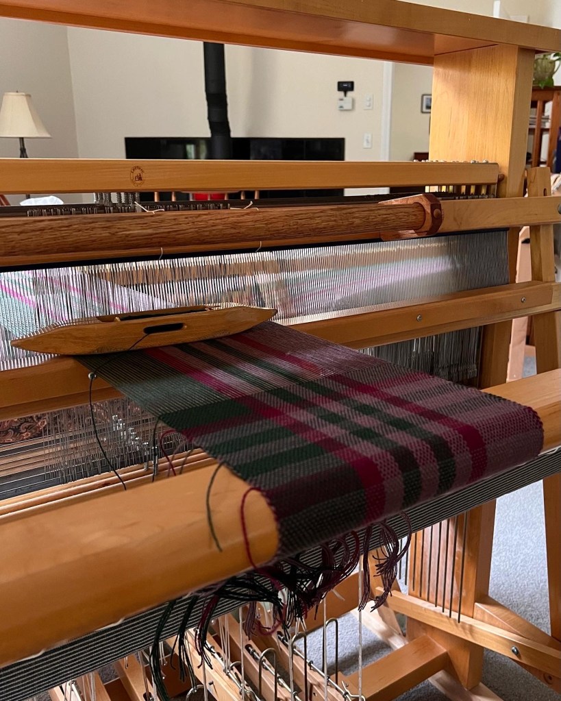 I was thrilled with all of the people who stopped by my little weaving workshop during the Monadnock Art Tour this year. What fun! It was lovely to see so many friends and neighbors, and to meet new people who are curious about weaving in the old way. Thank you. I don’t have many photos of the day since I was busy demonstrating weaving on the floor loom and rigid heddle, but Don did manage to take a short video of me at work: