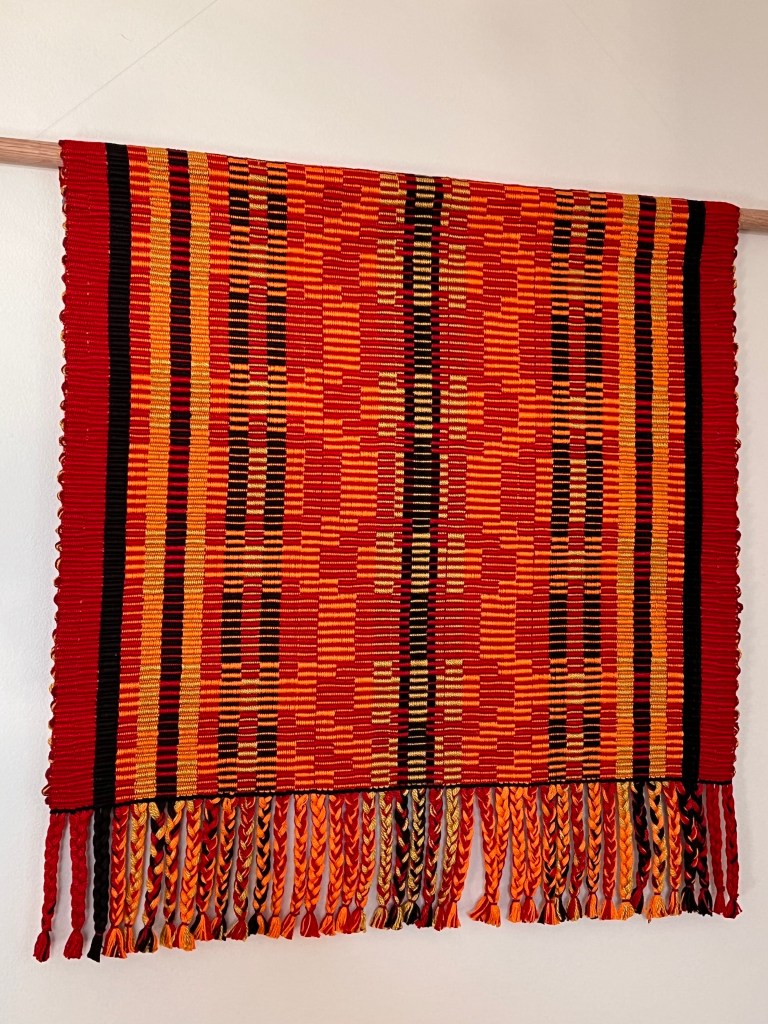 I’ve continued working with warp-faced weaves into the new year. I completed this eight shaft design on the winter solstice:
