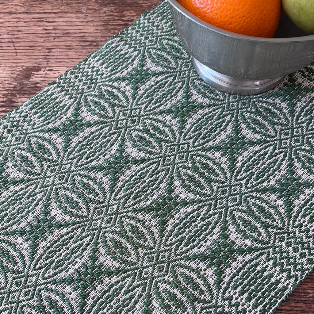 And did you know that I have a new pattern available for four shaft looms? Please click on the photo caption below for more info about this overshot table runner: