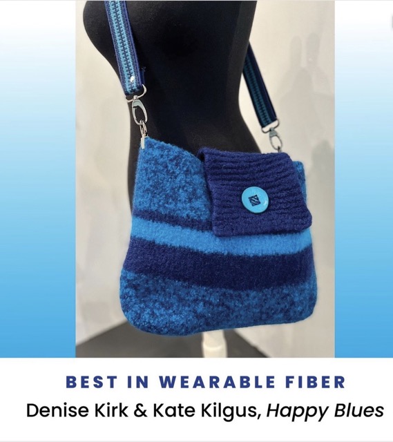 The collaboration that I did with my friend and colleague, Denise Kirk, garnered us an award for our entry in the Art, Craft & Design exhibition. We are truly honored. Denise knitted and felted a wool bag, and I made the adjustable strap with a coordinating woven band. Thank you to all of the generous sponsors who continue to support fine craft in New Hampshire.