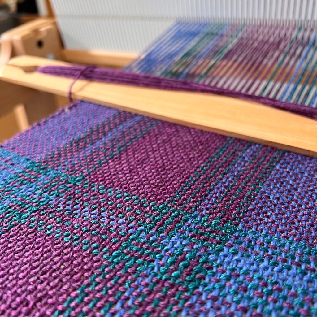 Family members have received many (probably too many, but they’re too polite to say so) handwoven creations over the years. I’ve inundated people with kitchen towels, placemats, table runners, and, of course, handwoven scarves. I made quite a few scarves for my Dad over the years. He passed away in 2021. Earlier this year, my mom sent me a box of winter scarves and mittens that I’d made for my parents over the years but since moving to South Carolina there was little need for woolly scarves. More scarves!
